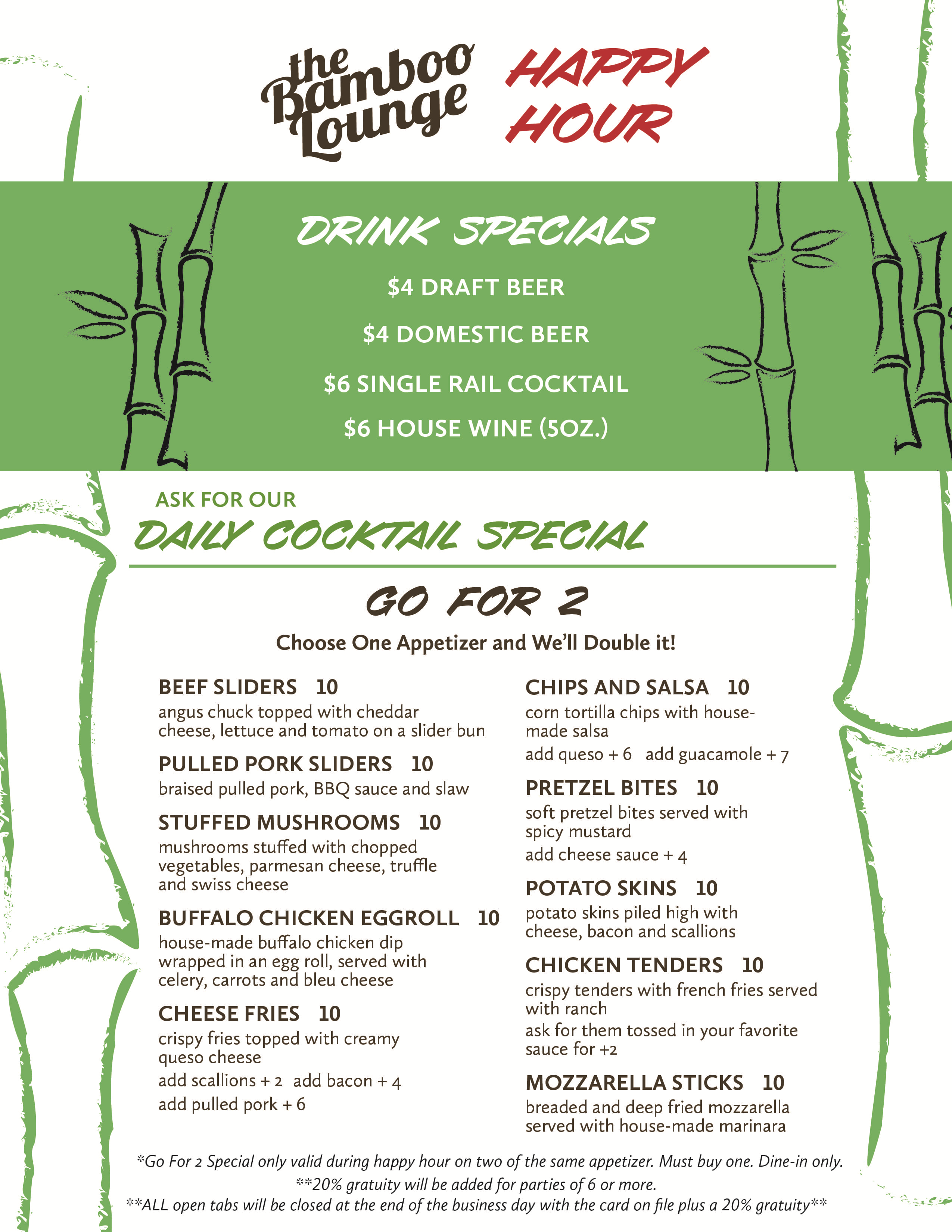 Bar/Lounge, Happy Hour, Lite FareMeal Types